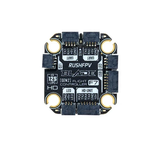La stack RUSHFPV Blade F722 Mini 60A Racing V2 est composé d’une carte de vol Blade F722 V2 Mini DJI Digital et d’un ESC 4en1 Racing 60A 6S BL32. De dimensions de 29 x 29 x 6,8 mm avec un poids de seulement 5 g, la carte de vol RUSHFPV comprend un processeur STM32F722, un gyroscope MPU6000, une Blackbox de 16 Mb et un double BEC : 5 V, 2 A ; 10 V, 1,5 A. Elle est également équipée d’un adaptateur avec une prise USB-C.