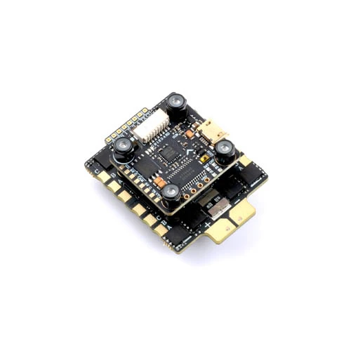 Cette stack SkyStars est composée de la carte de vol F7 RS F722 MPU6000 et de l’ESC 4en1 MVP60 F4 128K BL32 6S 60A. La carte de vol est dotée d’un processeur STM32F722RGT6, d’un gyroscope MPU6000, d’un BEC 5 V (3 A) et de 6 UARTS. Elle comprend de plus un buzzer et une diode TVS pour plus de sécurité. L’ESC, quant à lui, dispose d’un firmware BLHeli_32. Il peut supporter un ampérage continu de 60 A et de 80 A durant 10 secondes. Pour alimenter la stack, utilisez une batterie LiPo de 3 à 6S (non fournie). Des trous de montage de 20 x 20 mm (M3) sont présents sur la stack pour faciliter son installation sur votre châssis.