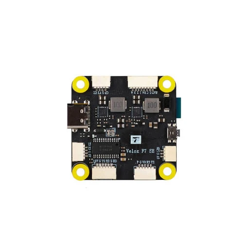 La stack T-Motor Velox F7 SE V50A allie puissance, précision et fiabilité pour une expérience de vol unique. Cette stack T-Motor est composée d’un contrôleur de vol F722 SE et d’un ESC 4en1 V50A SE HD. La carte de vol est dotée d’un processeur STM32F722, d’un gyroscope ICM-42688-P, d’un firmware STM32F7X2, d’un double BEC de 5 V (2 A) et 10 V (1,5 A), d’une Blackbox de 128 Mb, d’un OSD AT7456E et de 6 UARTS. Cette FC intègre de plus le Bluetooth TMFC. Vous pourrez ainsi régler vos paramètres depuis l’application SpeedyBee. Cette carte de vol comprend aussi le PIT mode, vous permettant de régler votre VTx sans perturber les autres télépilotes en plein vol.