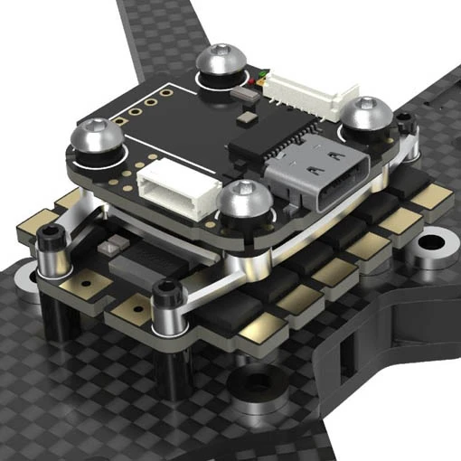 L’ESC de cette stack offre des caractéristiques de vols souples et des accélérations fluides. Il possède un courant continu de 60A et de 70A en rafale. Il dispose du firmware AM32 et évolue sous les protocoles Dshot 300/600. L’ESC est doté d’une monture Gorilla. Le support aluminium fourni confère à la stack des trous de montage en 20 x 20 mm et en 30.5 x 30.5 mm. Cette dernière fonctionne avec une LiPo 3-6S (non fournie).