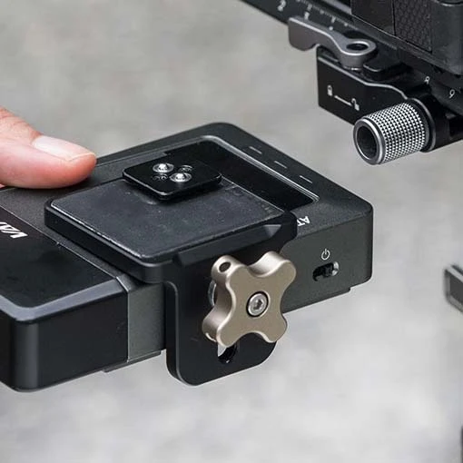 Installez le support de montage sous la platine de fixation de votre caméra et fixez-le à l’aide de la vis 1/4″. Il est compatible avec les stabilisateurs DJI RS 4, RS 4 Pro, RS 3 Serie, RS2 et RSC2 et les modules de transmission d’image sans-fil.