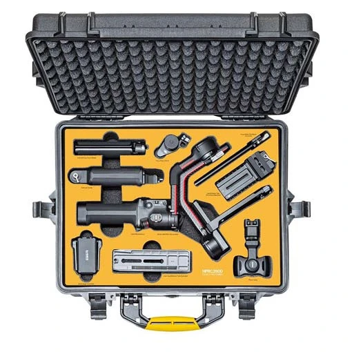 La valise étanche HPRC en résine légère permet de transporter votre stabilisateur DJI RS3 Pro Combo et ses accessoires. Ranger le Gimbal, le bundle kit de support barre pour moteur Focus, la plaque a démontage rapide, le support smartphone, support à démontage rapide inférieur, transmetteur d’image Ronin, poignée de mallette, extension de poignée/trépied, moteur focus, câbles… Chaque accessoire a un espace attitré grâce à la mousse prédécoupée.