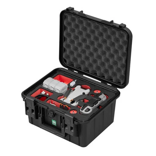 Cette valise TOMcase ECO Travel Edition est idéale pour transporter et stocker votre DJI Mini 4 Pro ou DJI Mini 3 Pro et accessoires. Elle est dotée d’une mousse pré-découpée qui accueille et protège le drone, une radiocommande (DJI RC-N2 ou DJI RC 2) avec joysticks montés, jusqu’à 10 batteries dont une dans le drone, ainsi que d’autres accessoires comme des câbles, des hélices de rechange, etc.